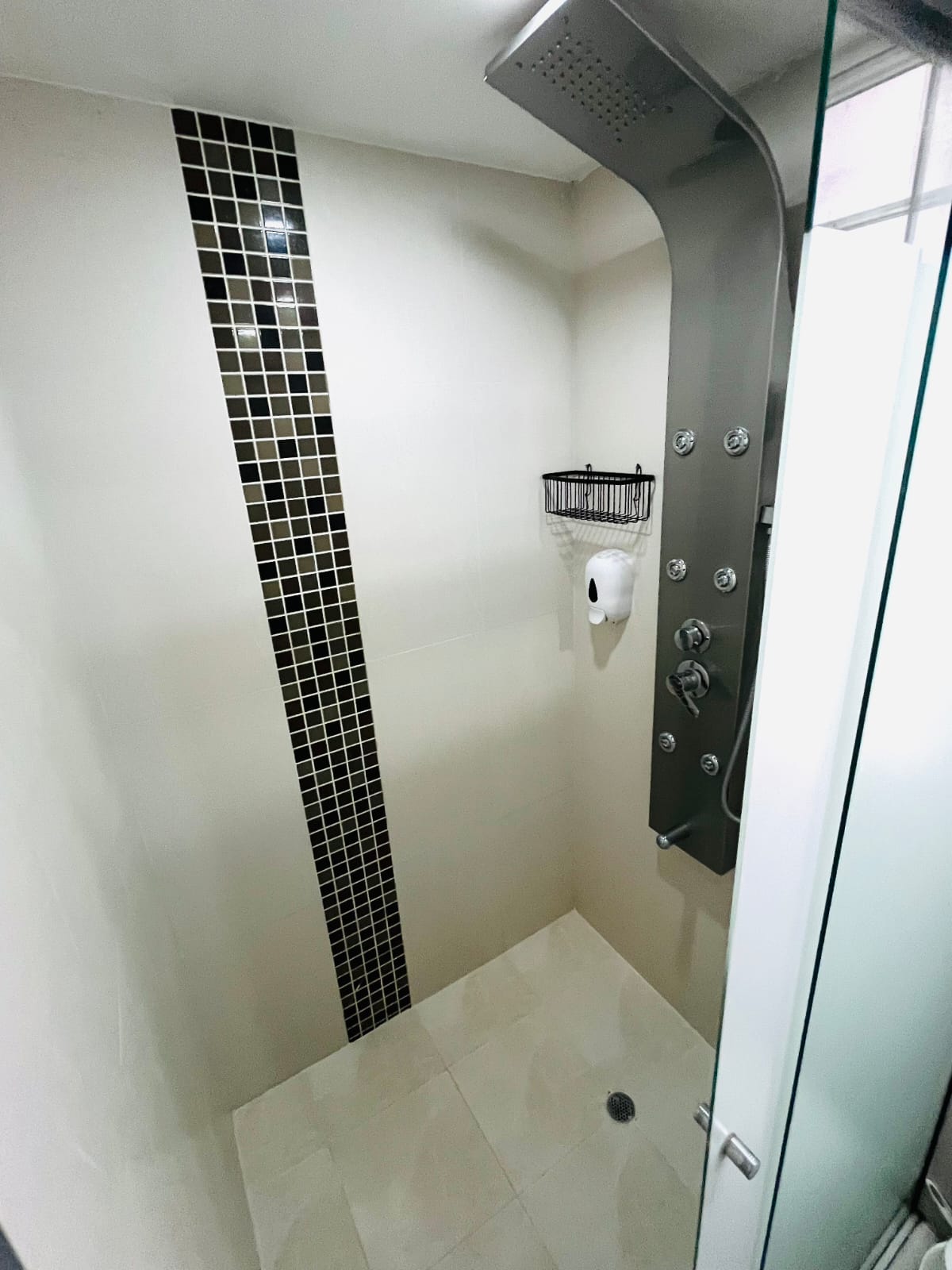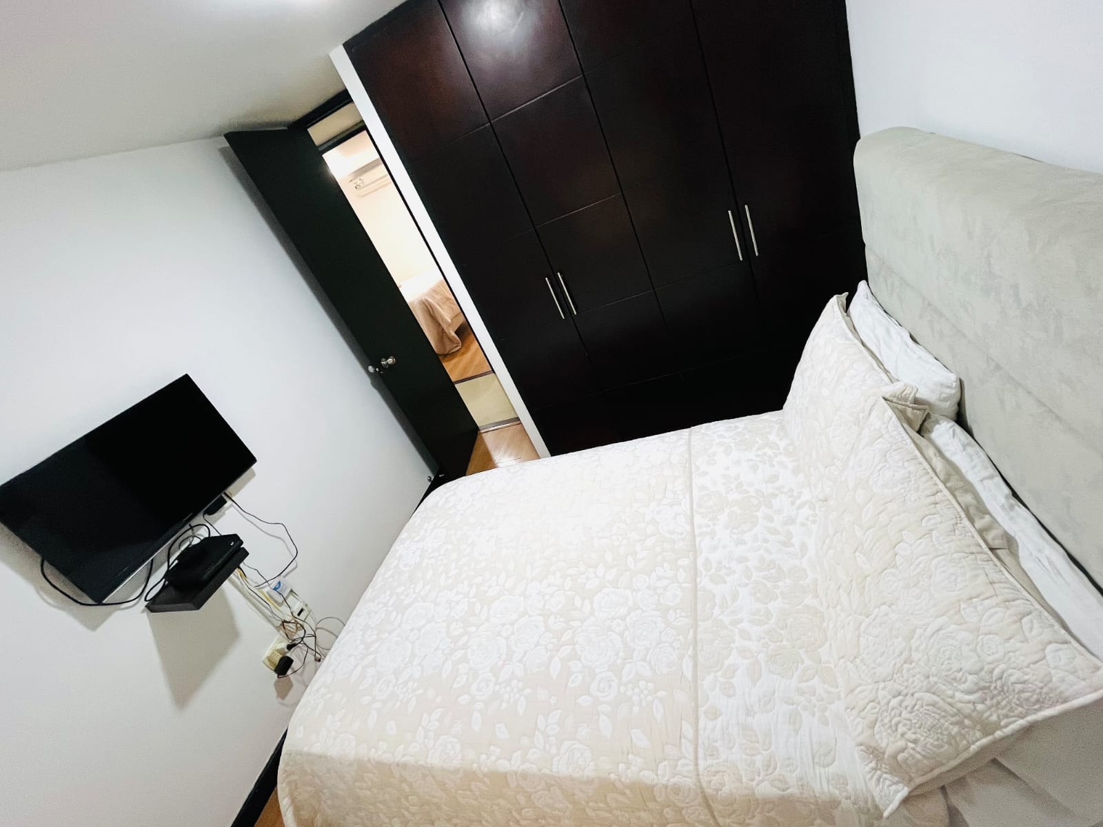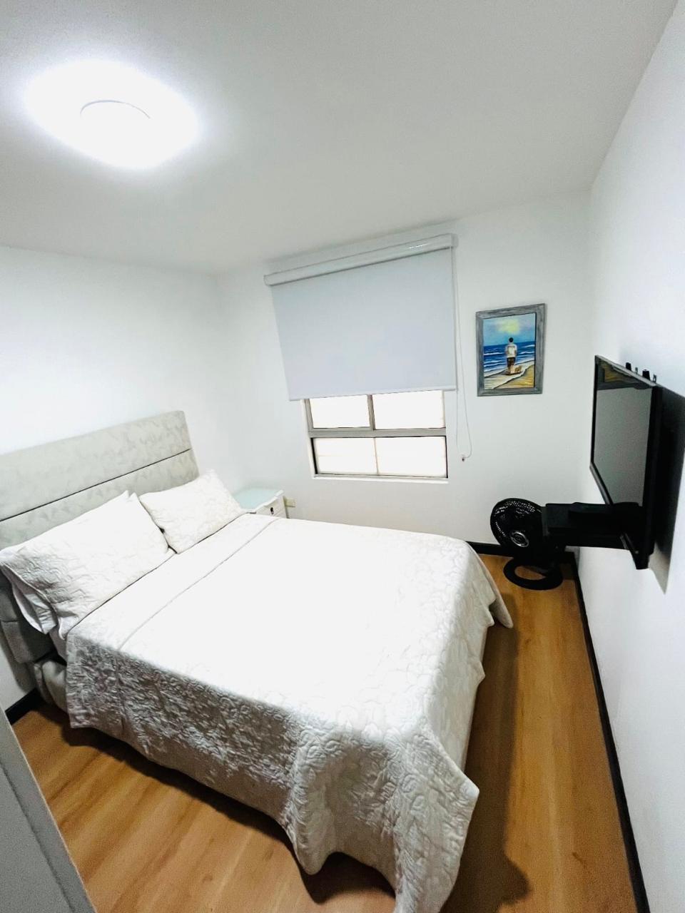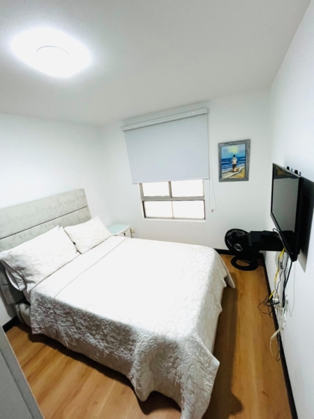 Cuenta con clóset, TV, ventilador y vista externa al pasillo de la unidad.