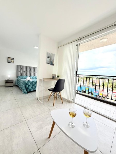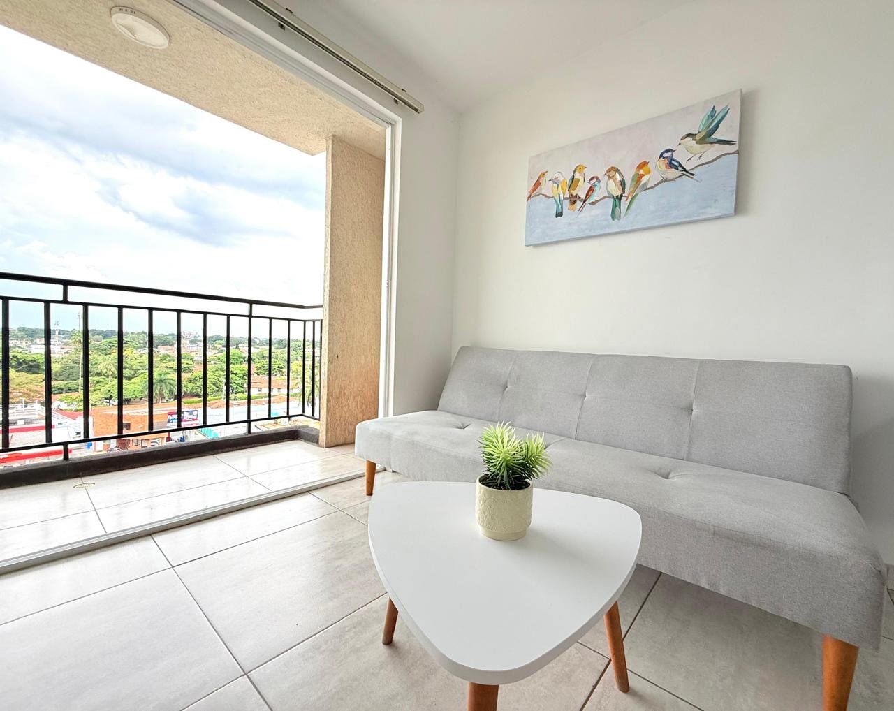 Espacio acogedor con sofá cama y un amplio ventanal con vista a la Avenida 3 Norte, perfecto para descansar o compartir.
